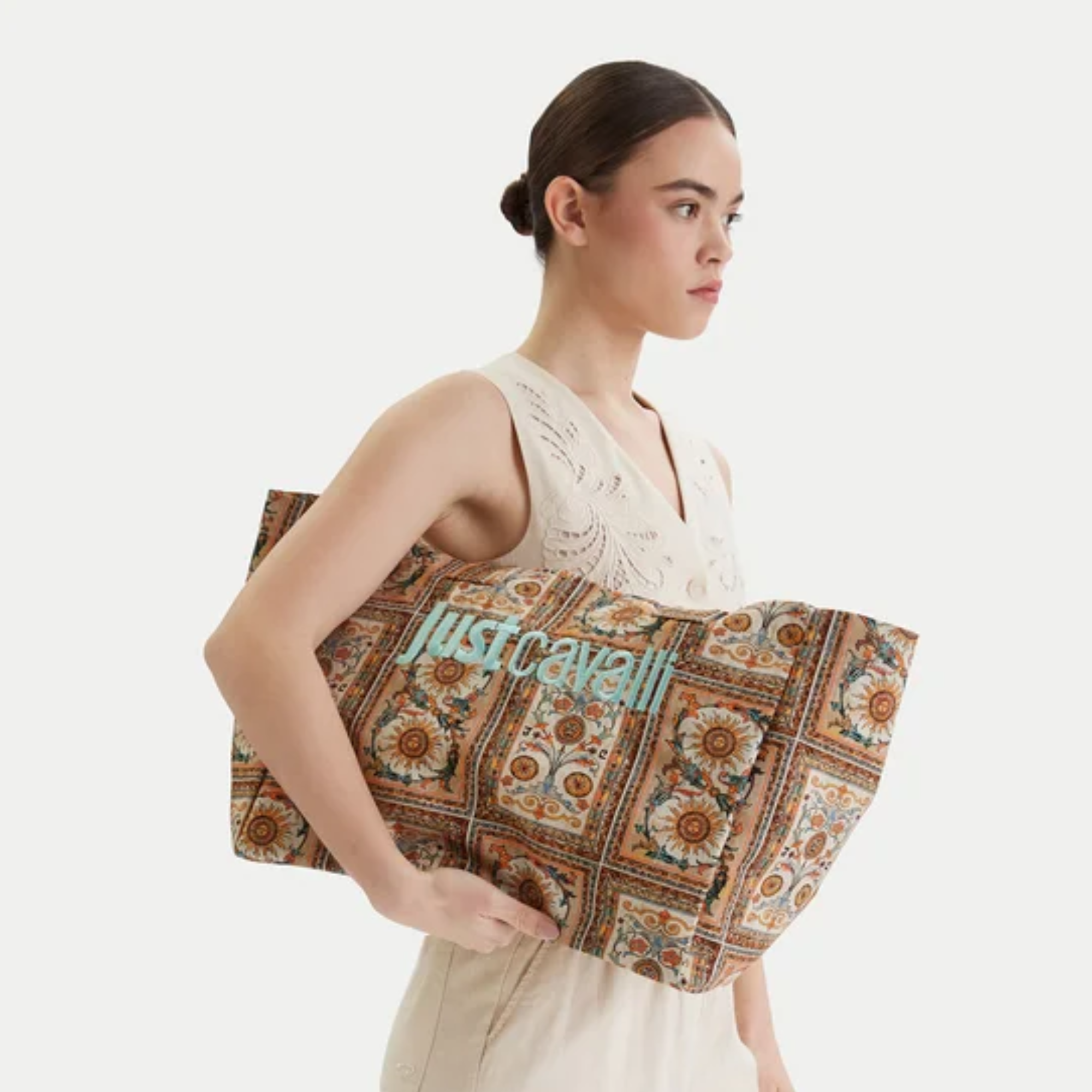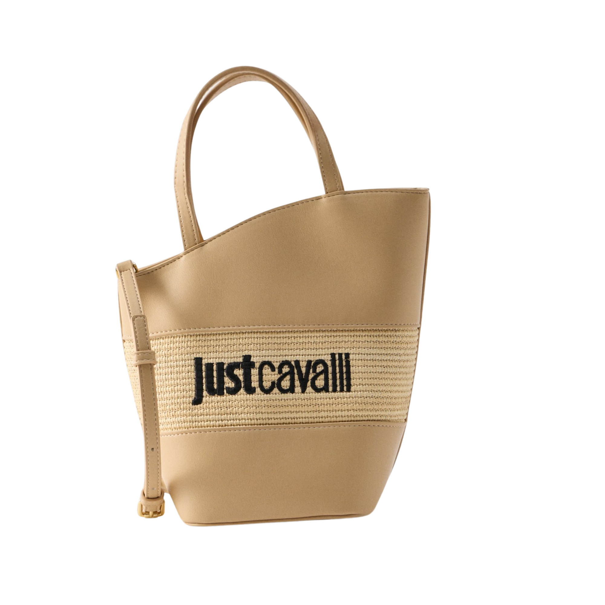 JUST CAVALLI LARGE ANGLED BEIGE TOTE BAG