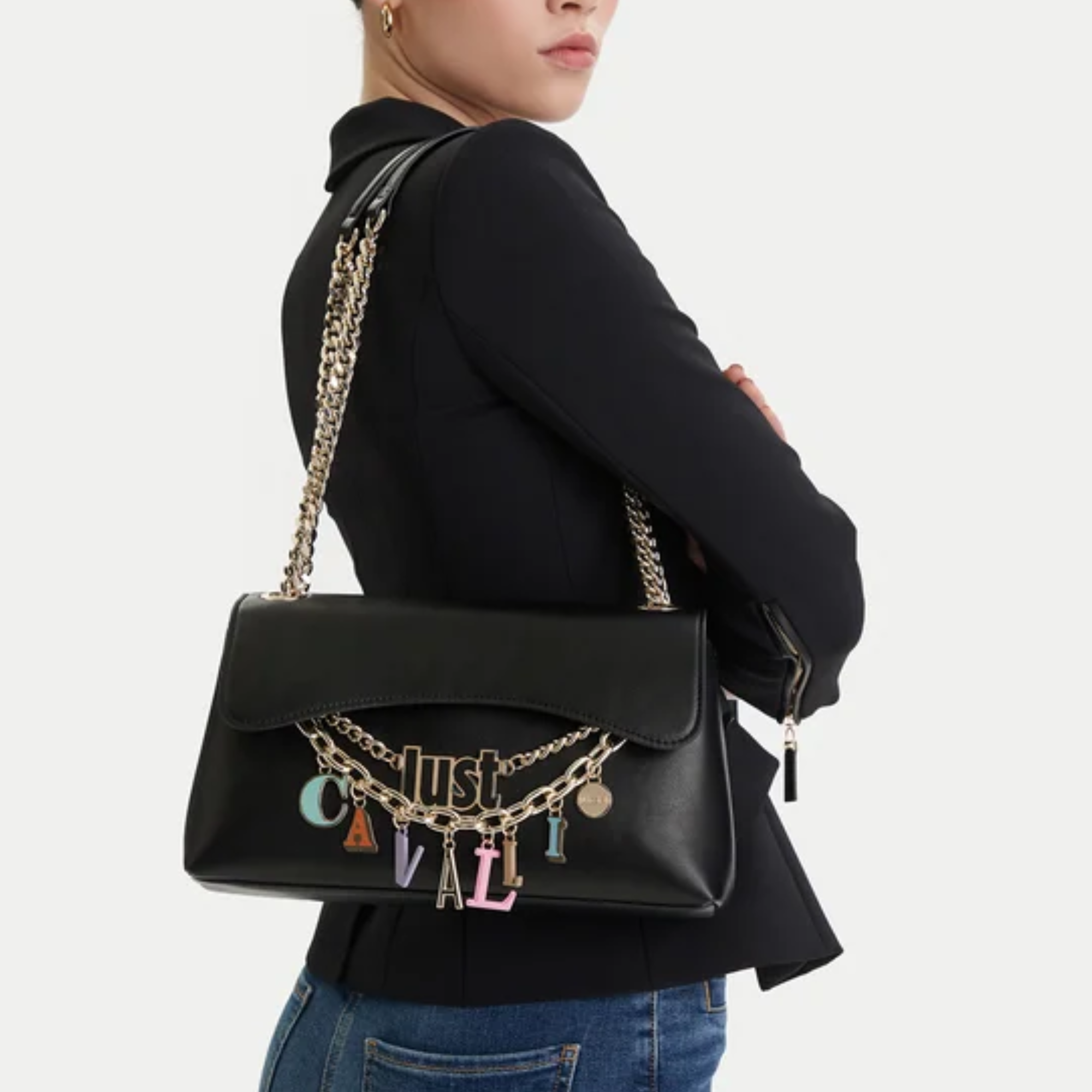 JUST CAVALLI SOFT SMOOTH CHARMS BLACK BAG
