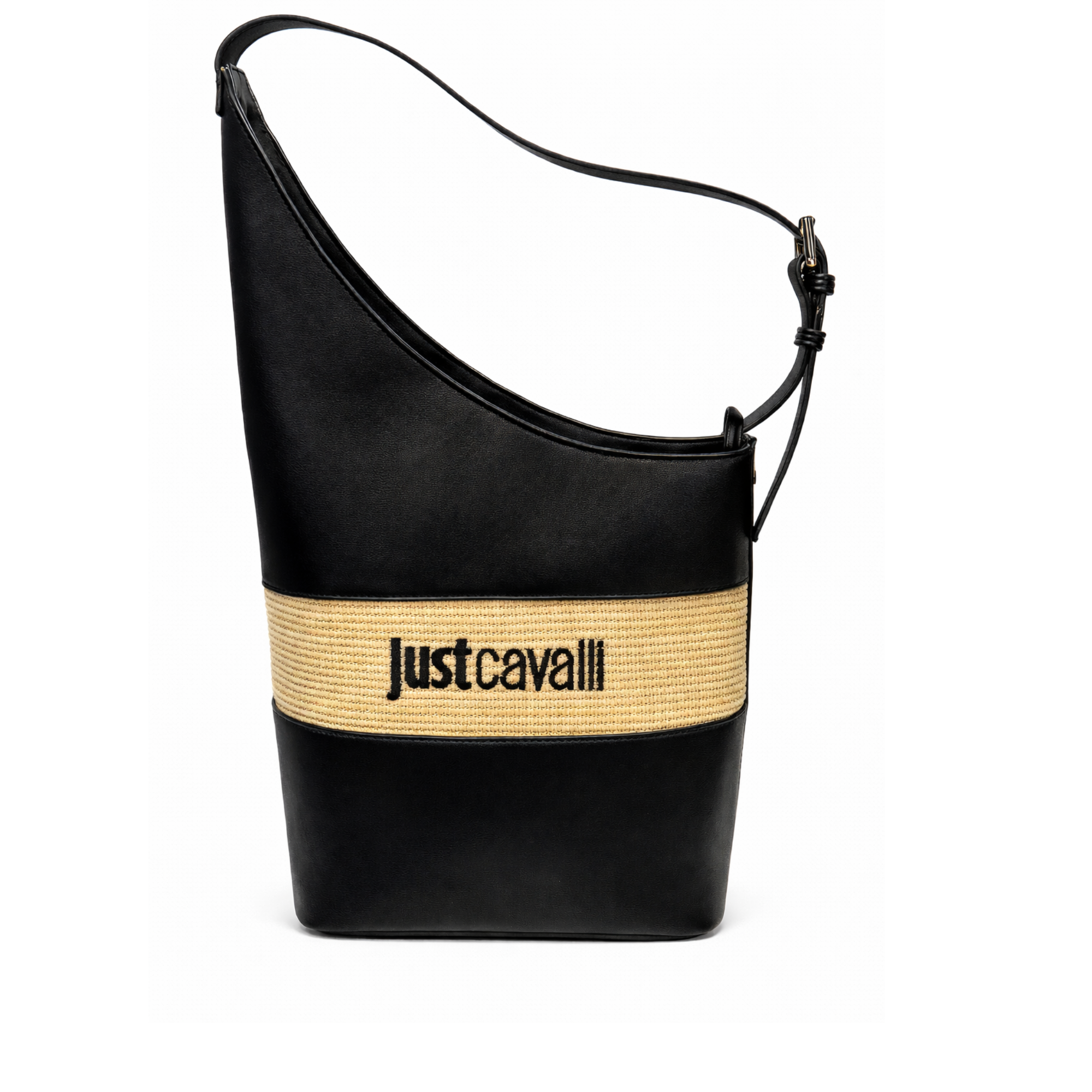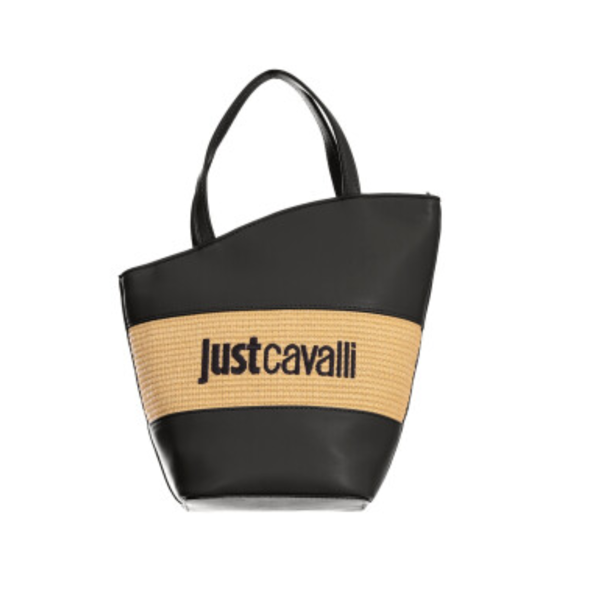 JUST CAVALLI LARGE ANGLED BLACK TOTE BAG