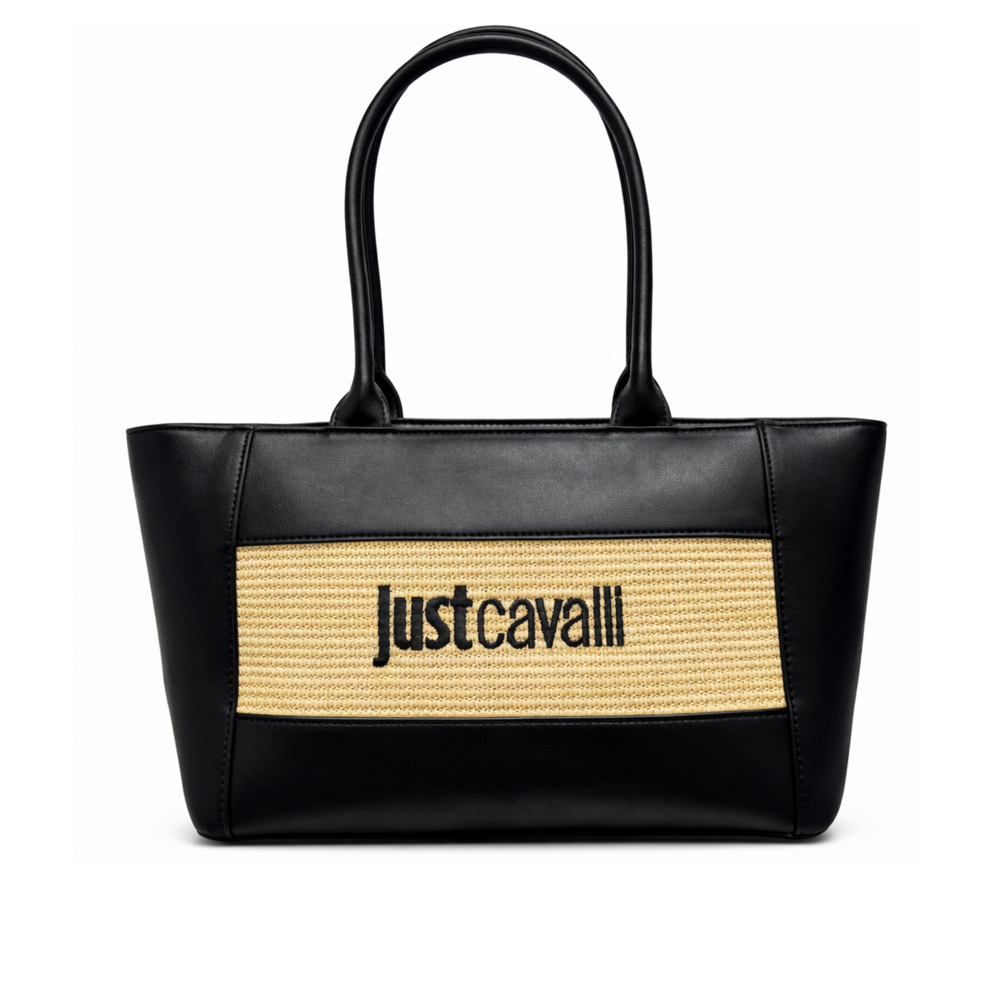 JUST CAVALLI LOGO BLACK TOTE BAG