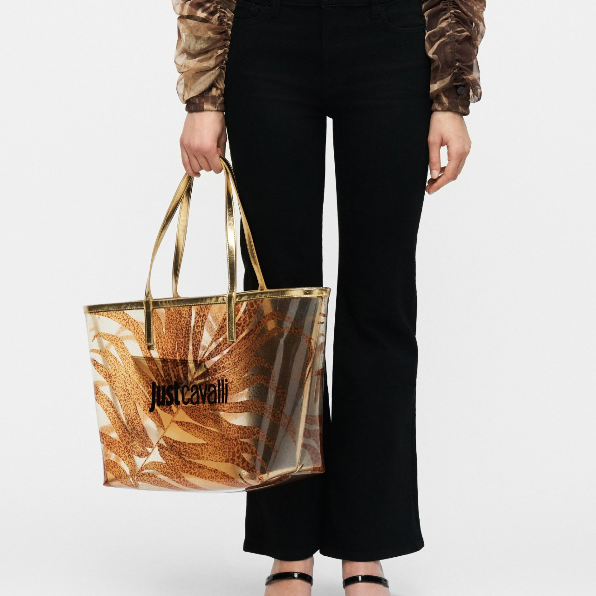 JUST CAVALLI TROPICAL BEIGE TRANSPARENT BAG