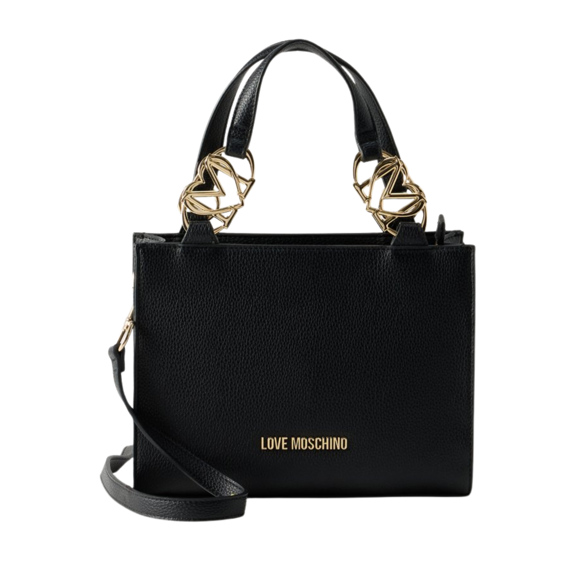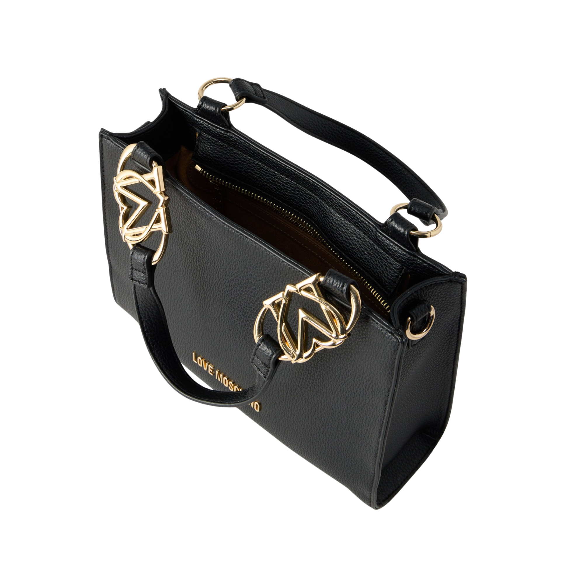 LOVE MOSCHINO LOGO-RING HANDLE BLACK BAG