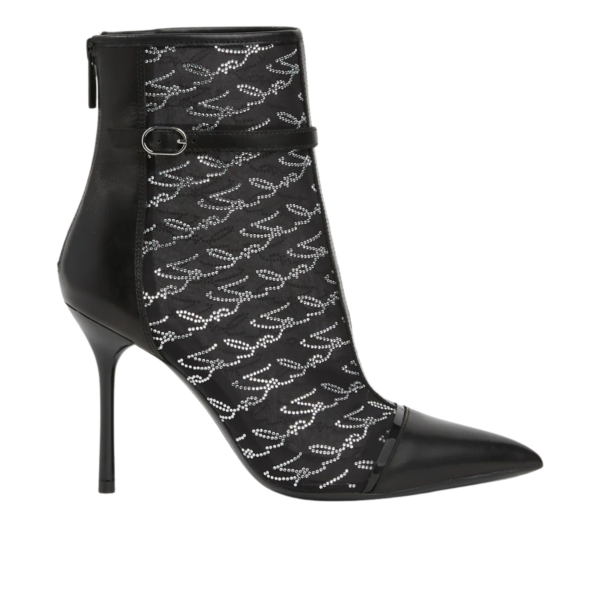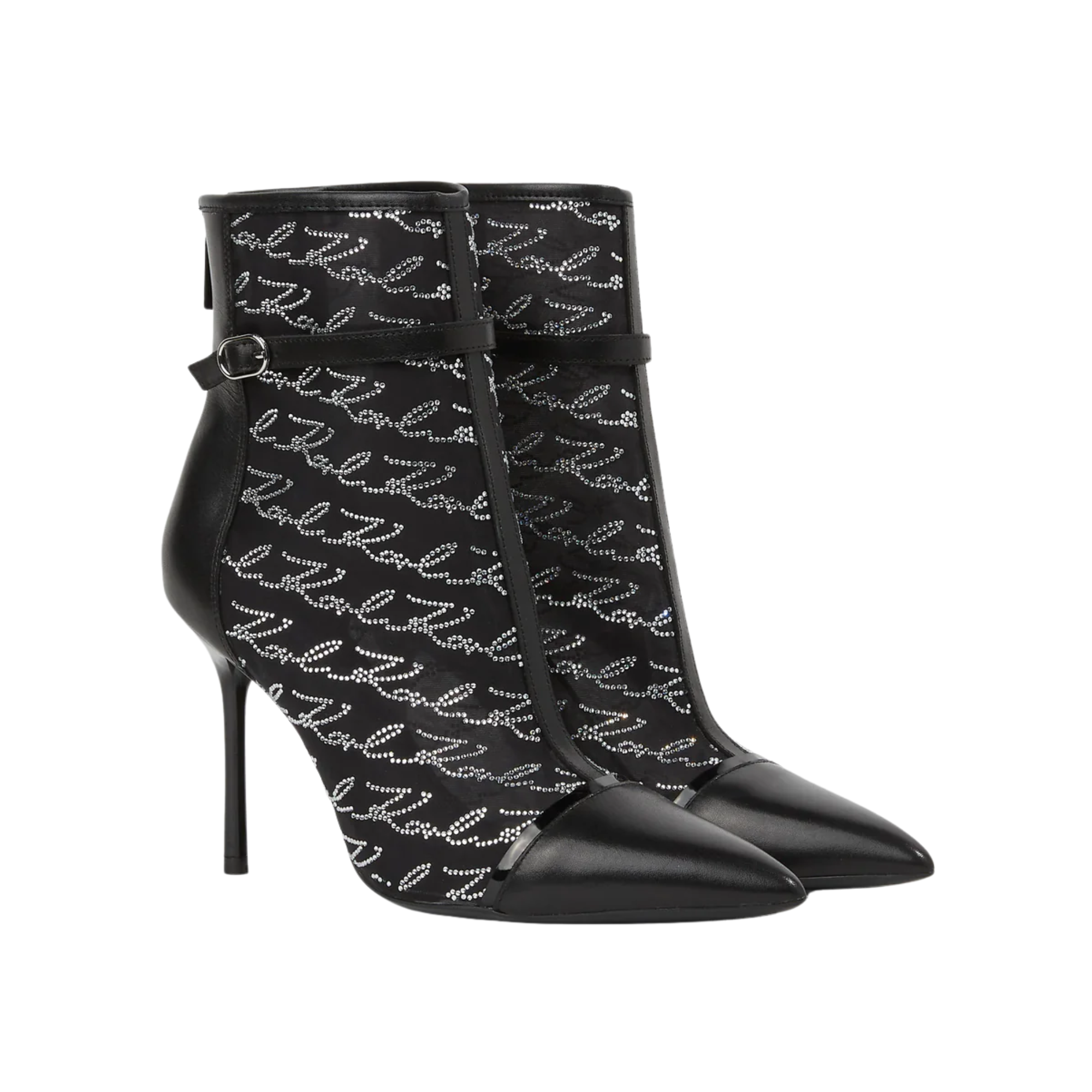 - Mix of leather and mesh embellished with the Karl Signature in rhinestones at the upper