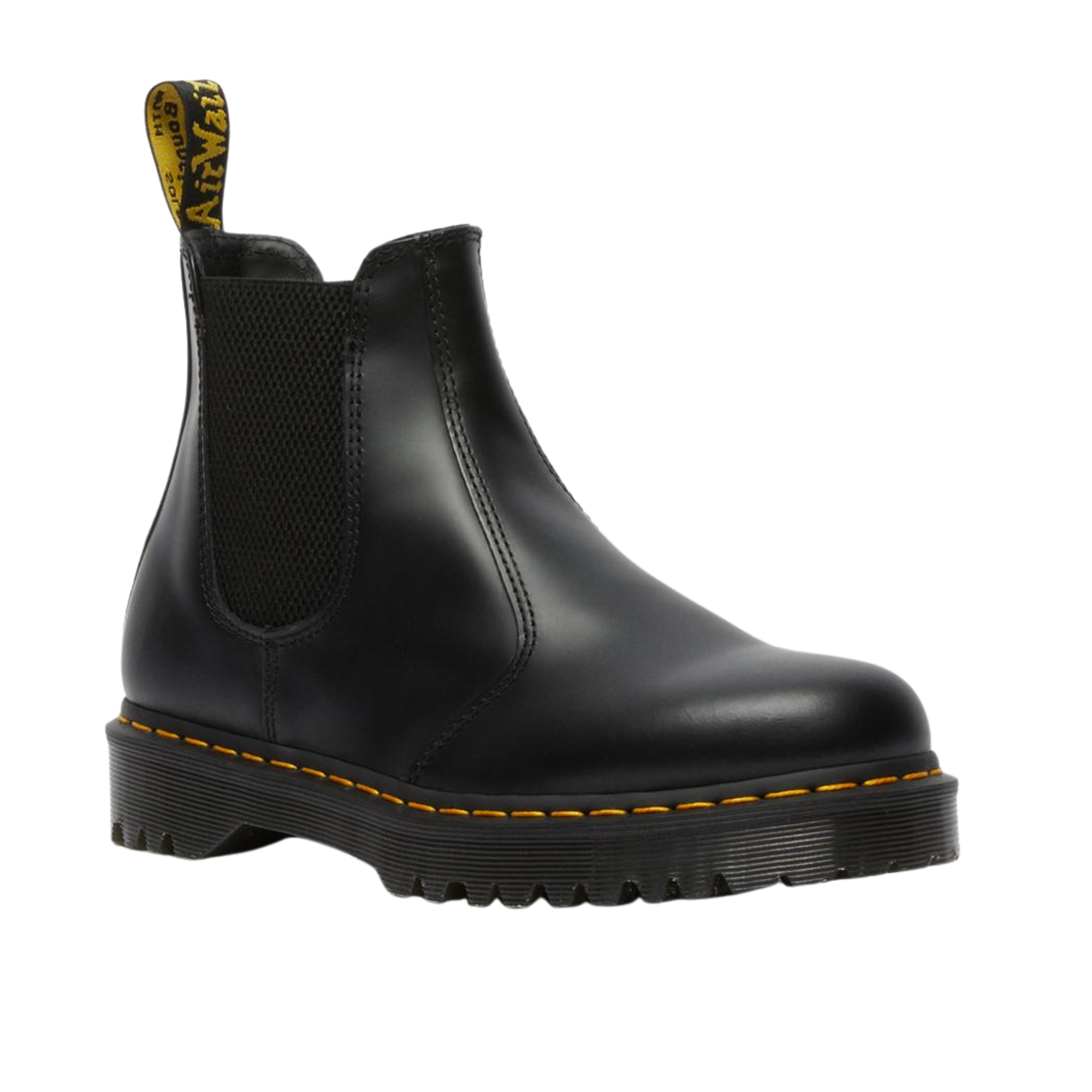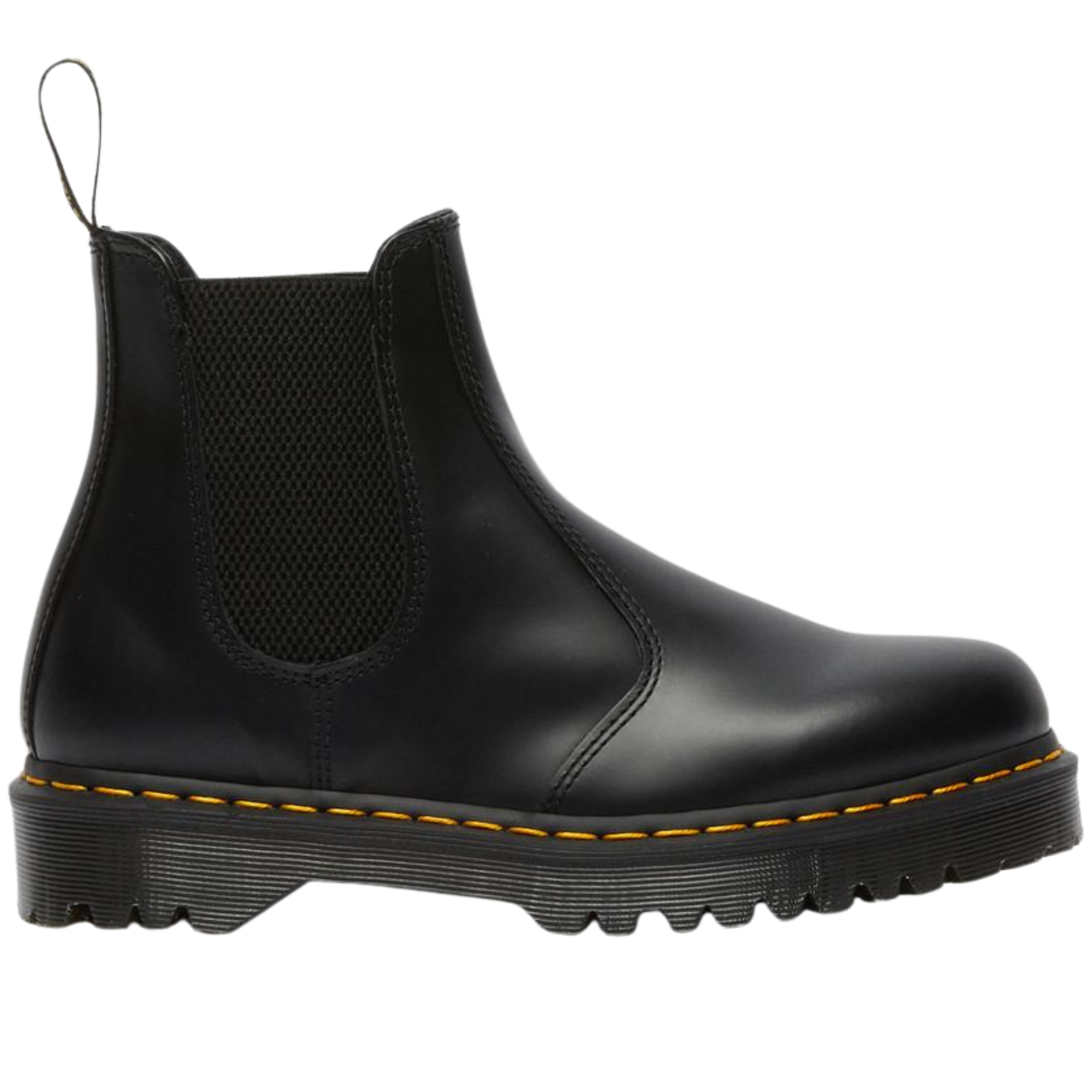 Step up with more sole. The 2976 Bex Chelsea boot takes our classic slip-on style to new heights with a chunky grooved sole marked with deep cleats and an exaggerated tread pattern. Built from standout Smooth leather and signed with yellow welt stitching and our black and yellow heel loop.