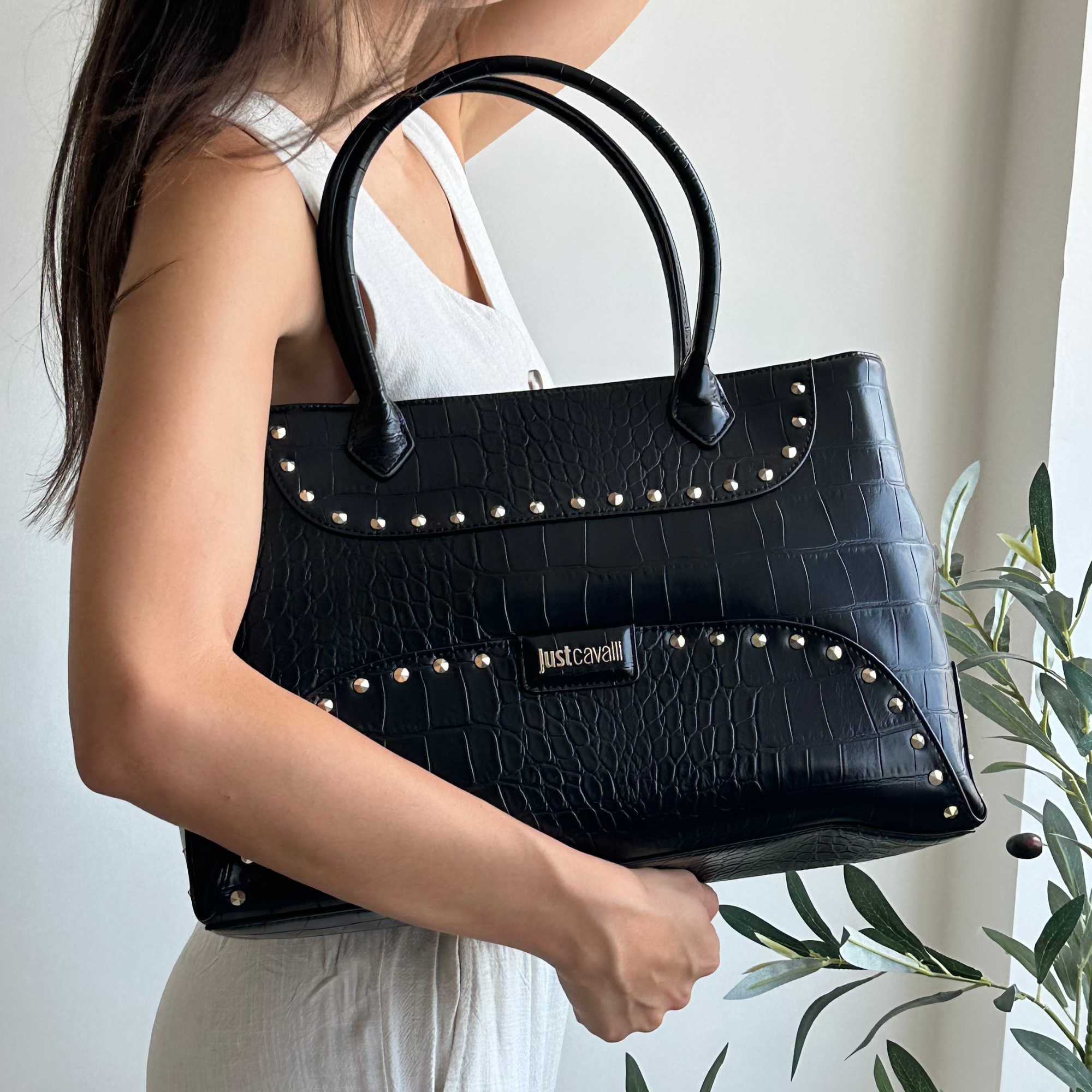 JUST CAVALLI CROCO BLACK LARGE BAG