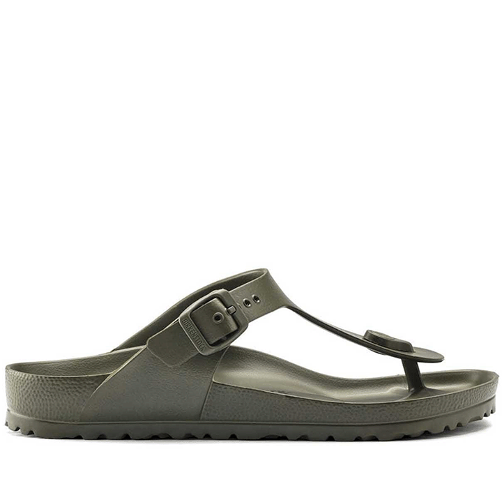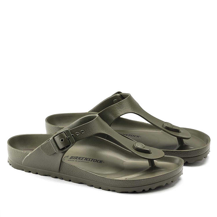 The BIRKENSTOCK Gizeh is our classic thong sandal. Modeled on the cork original, this sandal is made from ultra lightweight and highly flexible EVA. These colorful Sandals are shock-absorbent, waterproof, and skin-friendly. Wear them at the beach, in the garden, or in wellness and spa areas. It's the perfect addition to your classic BIRKENSTOCK Sandals.