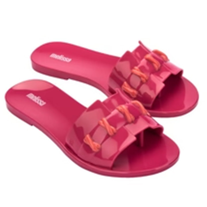 This new Melissa Ana Slide Ad sandal arrived with everything and has a beautiful color! She has a beautiful pink color and a wide splint with details imitating knots in orange.