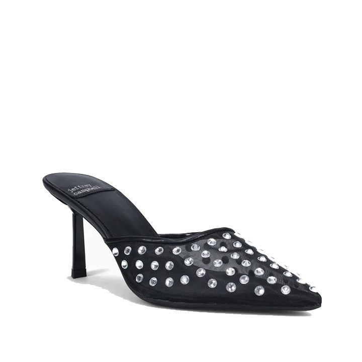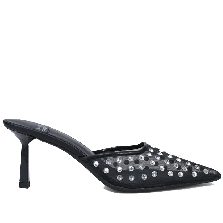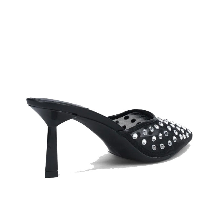 Jeweled mesh heeled mule