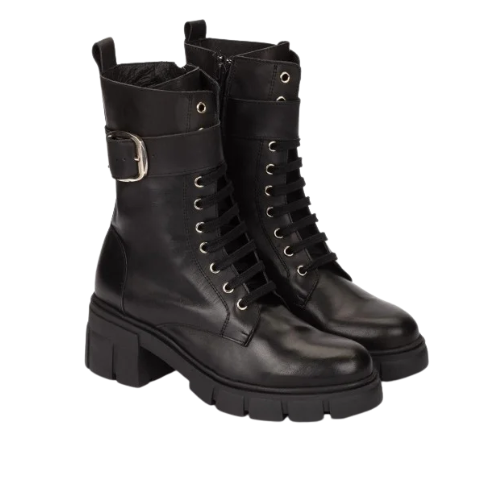HELENE ROUGE BLACK HEELED LEATHER BOOTS
