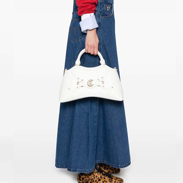 JUST CAVALLI CROSSED LACES WHITE BAG