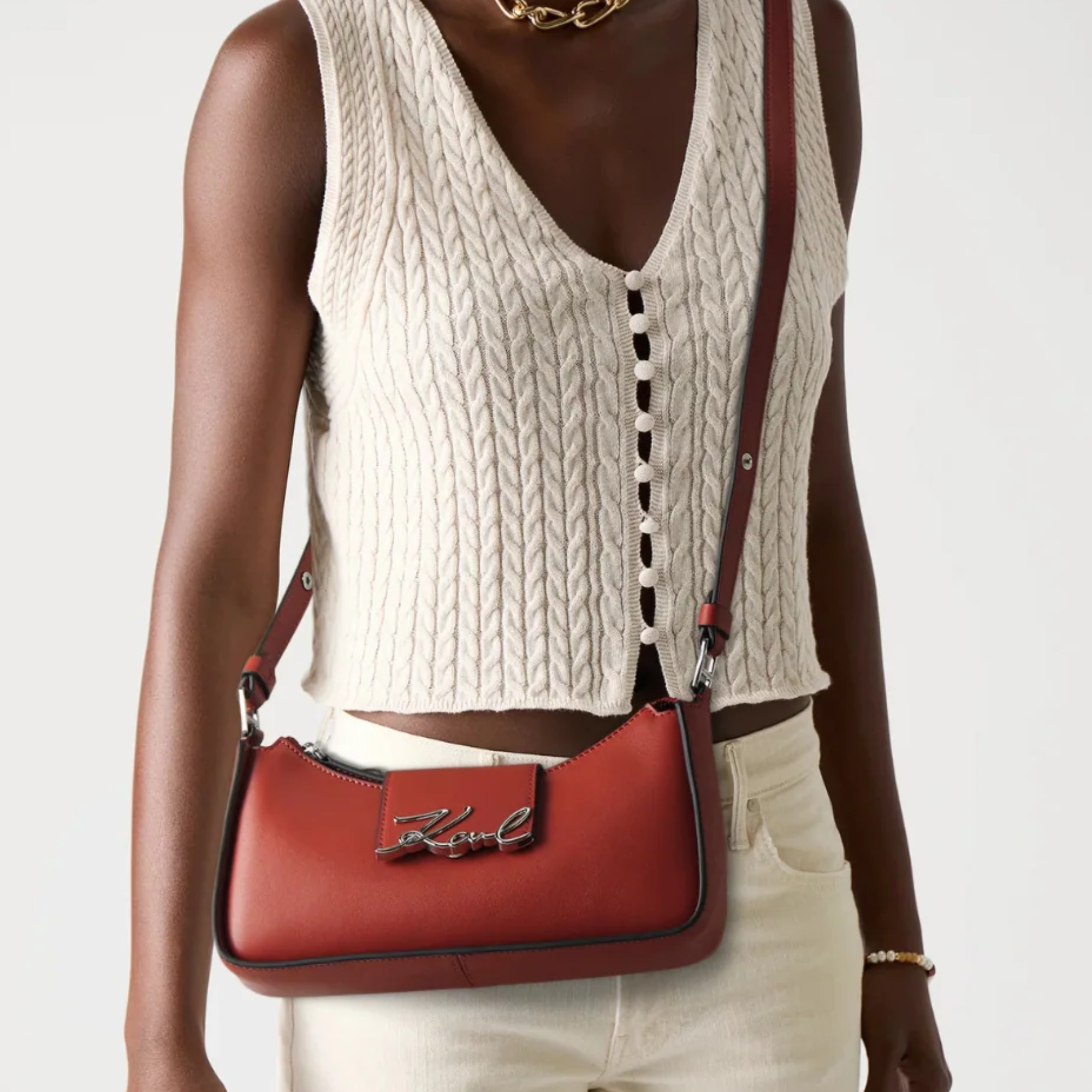 K/SIGNATURE BRIQUE K/SIGNATURE SM ZIP LEATHER BAG