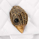 Black, leather, quilted design, signature eagle head pendant, interlocking chain shoulder strap, top flap with magnetic snap, main compartment, divided compartment with dividers, internal logo stamp