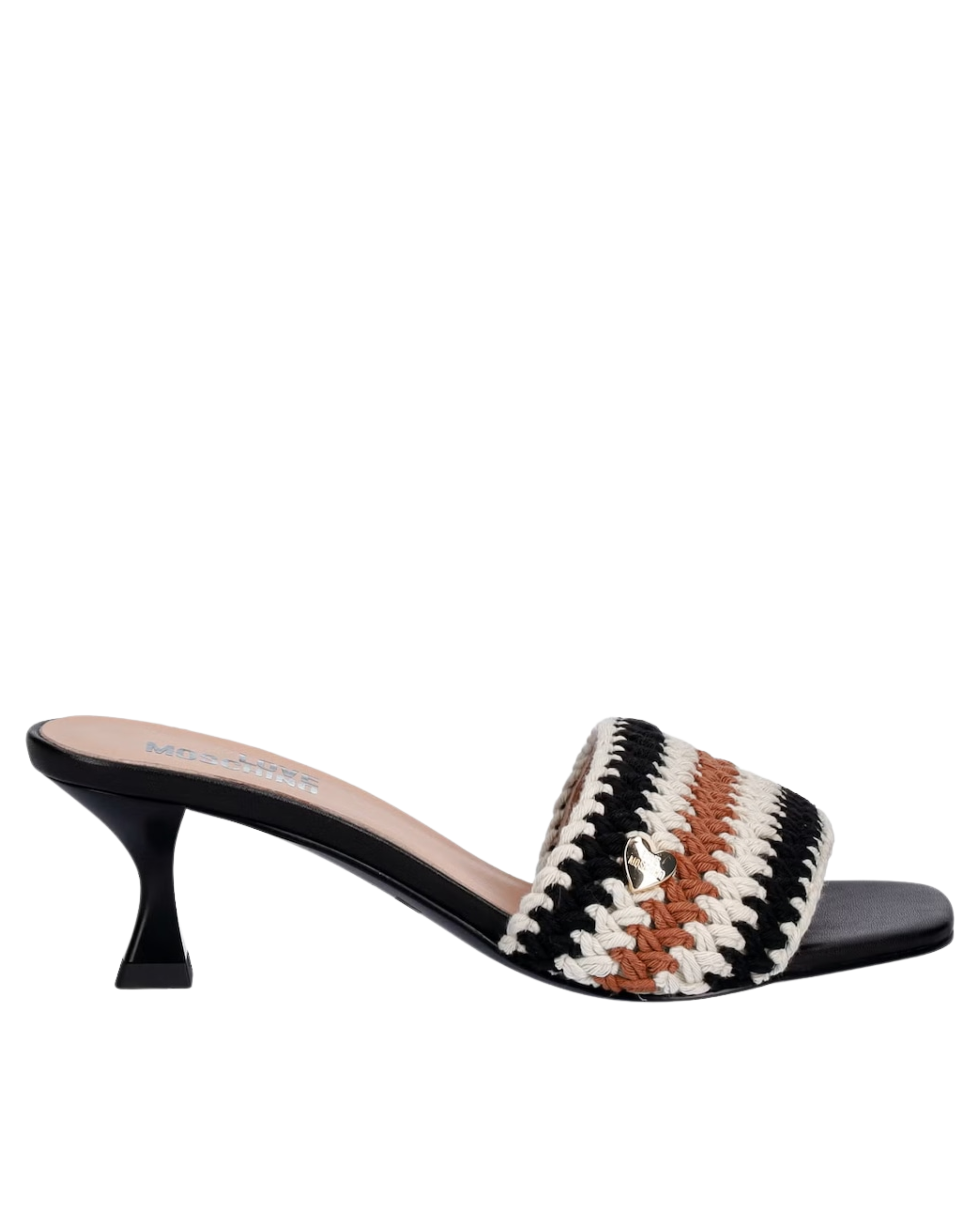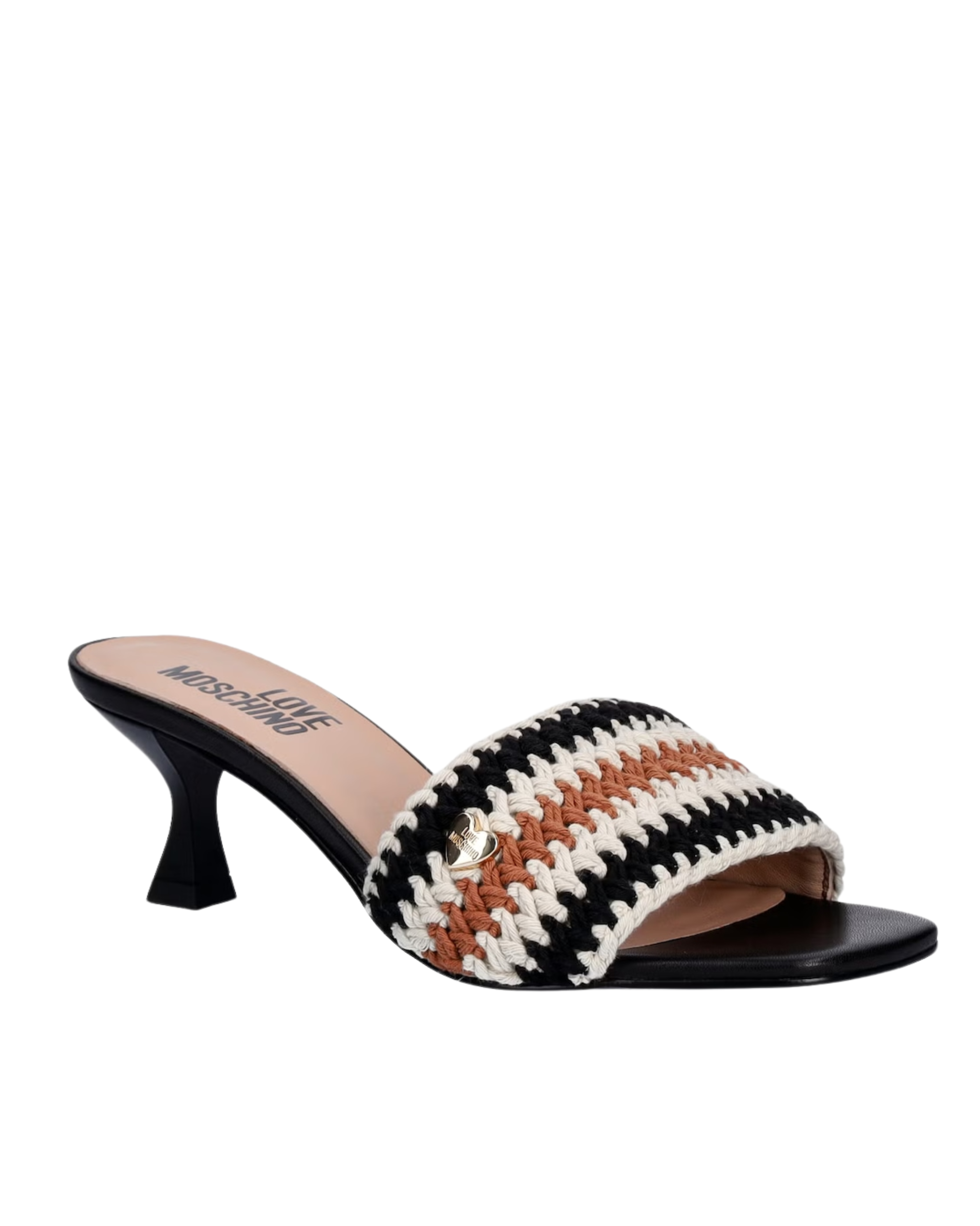 LOVE MOSCHINO LOW HEELED RAFFIA HEELS