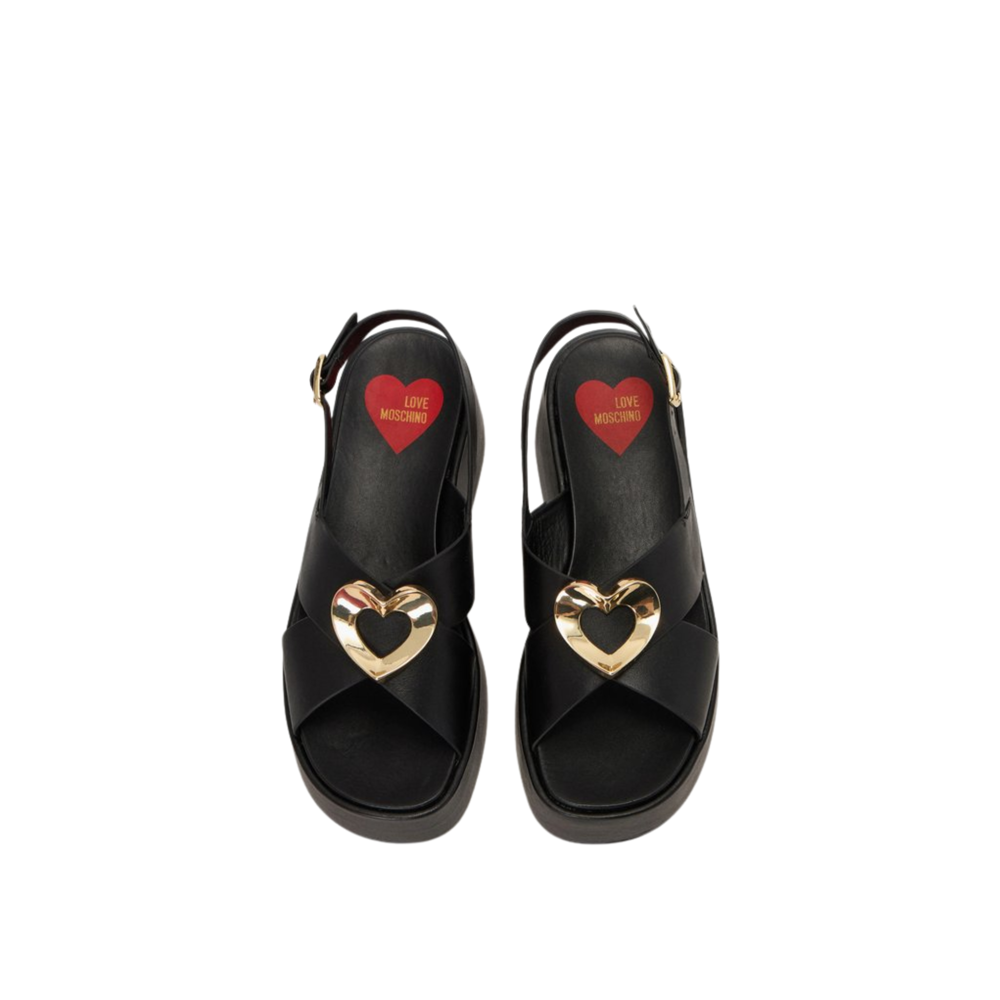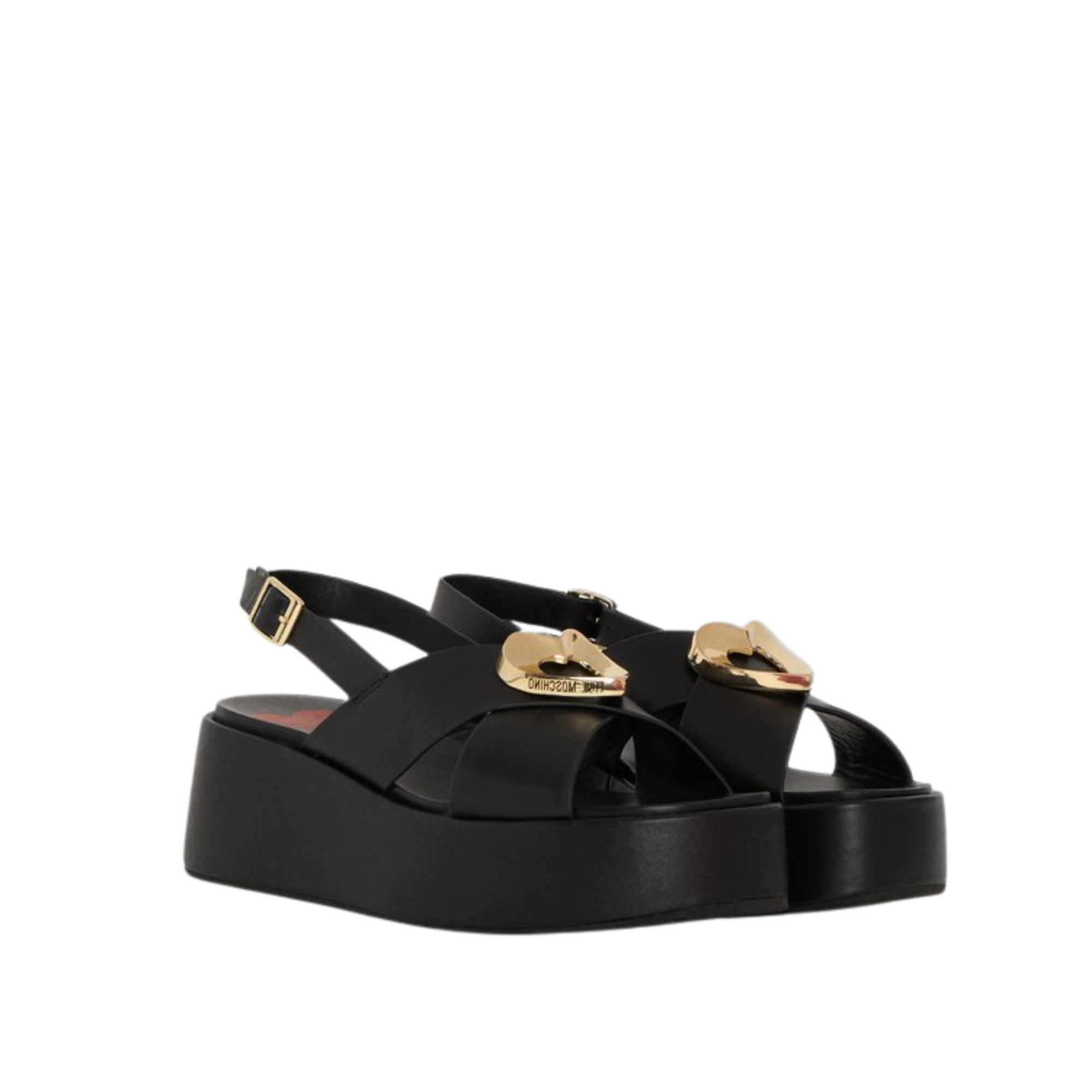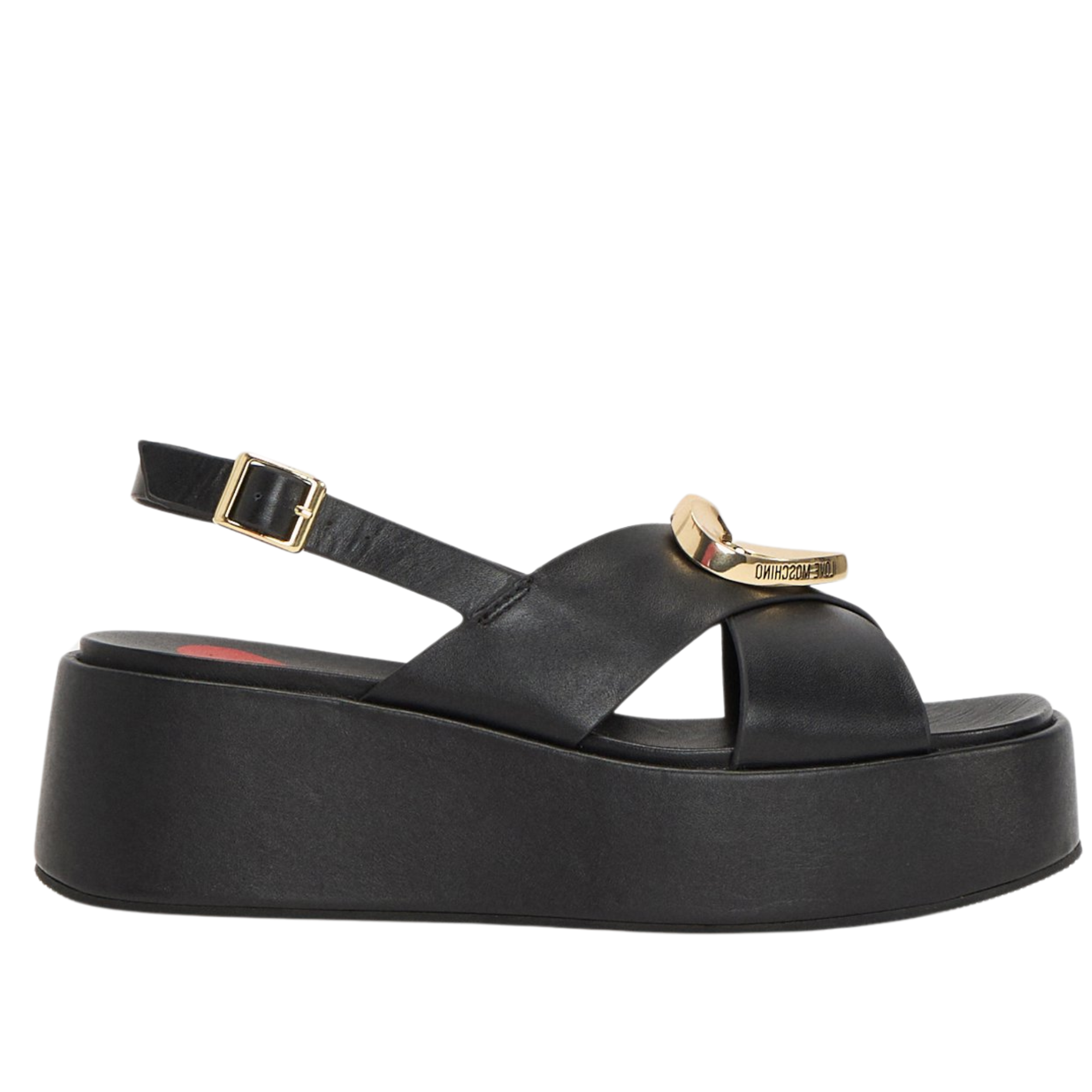 LOVE MOSCHINO WEDGE BLACK SANDALS