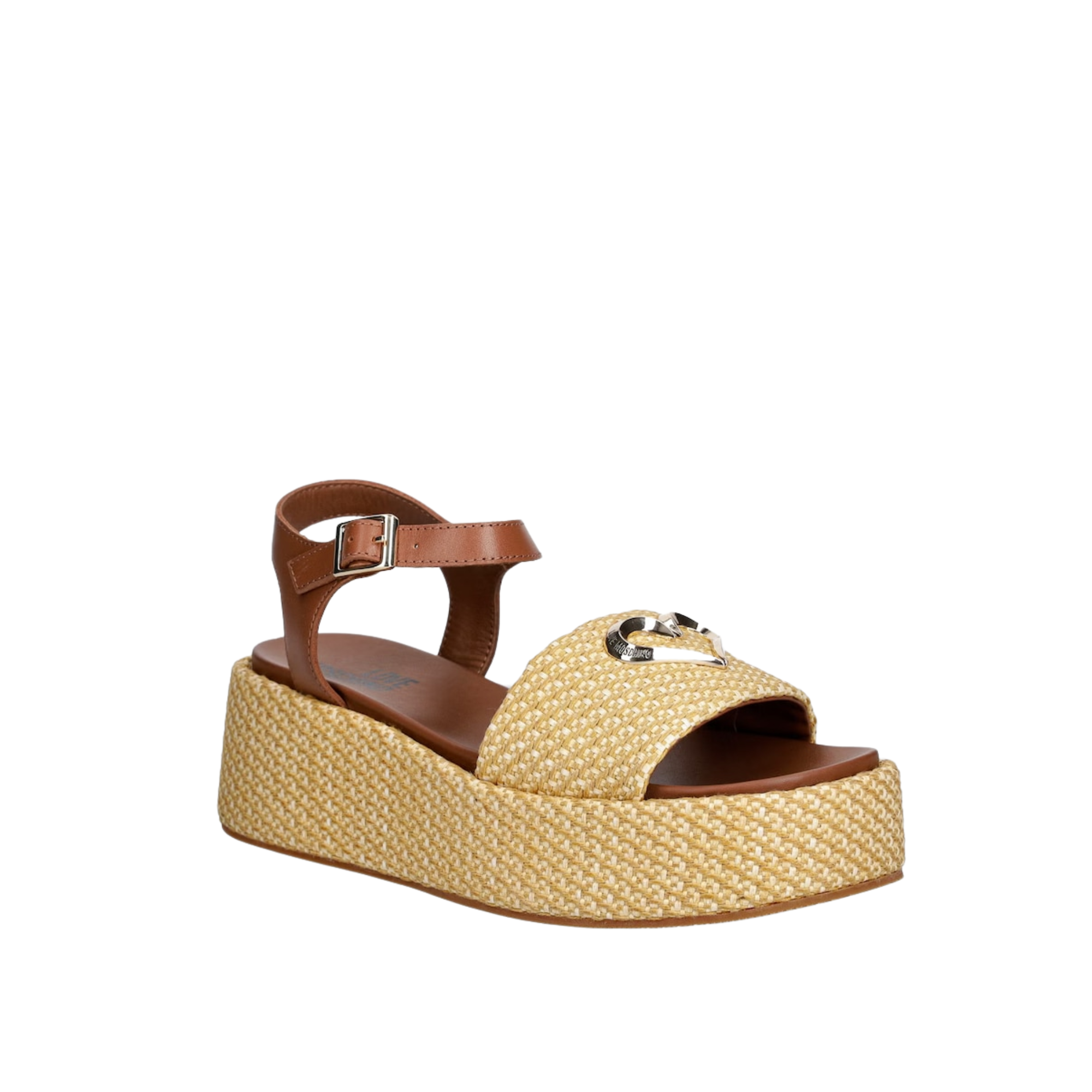 LOVE MOSCHINO WEDGE RAFFIA SANDALS