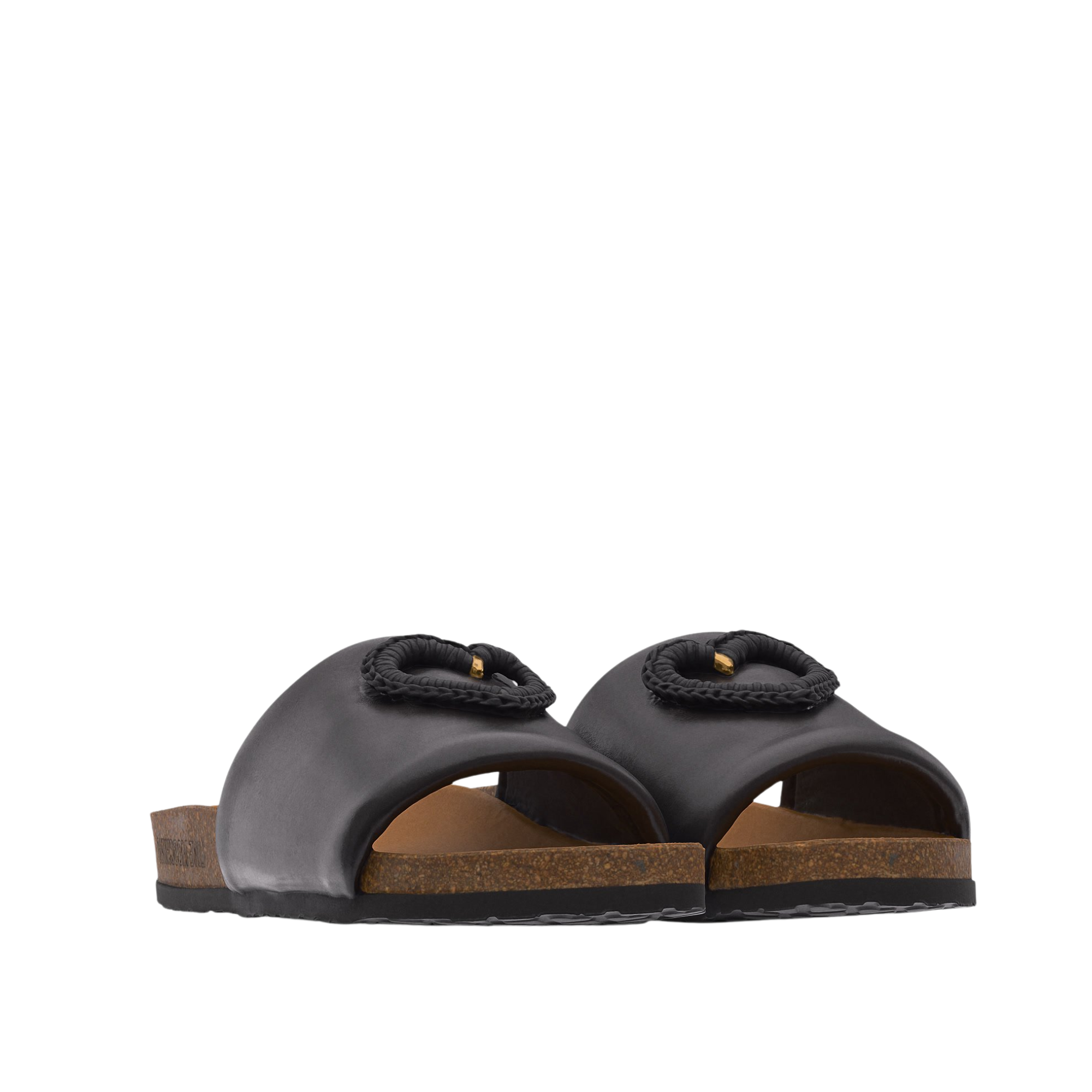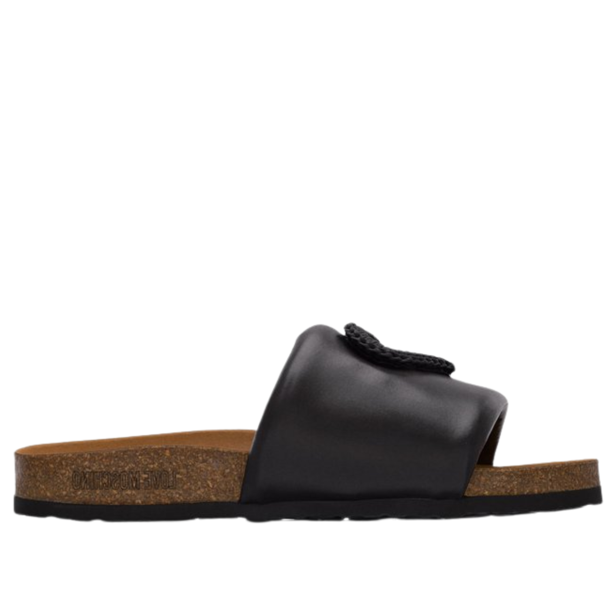 LOVE MOSCHINO BLACK LEATHER SLIDES