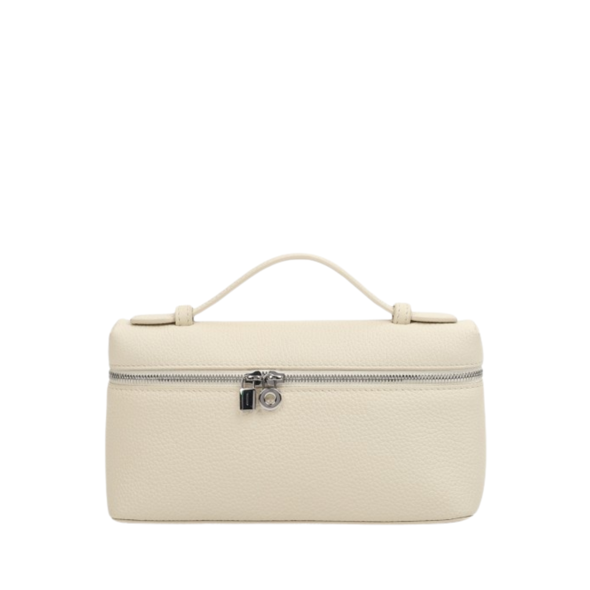 The bag is made of genuine leather and features a detachable, adjustable shoulder strap.