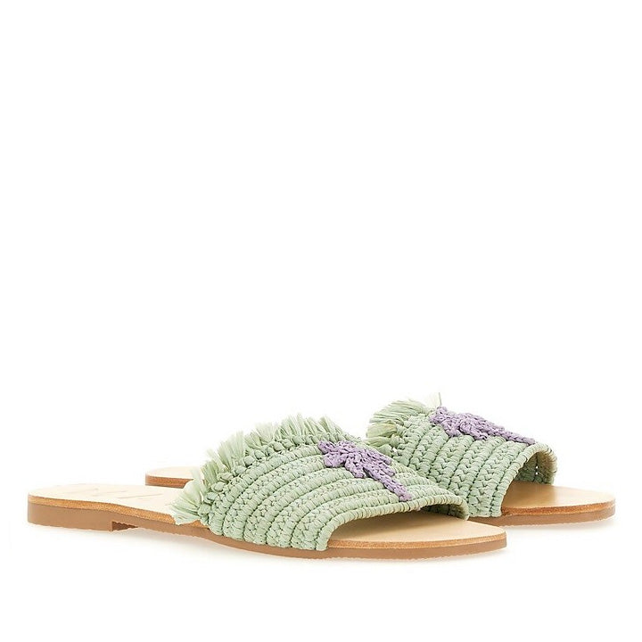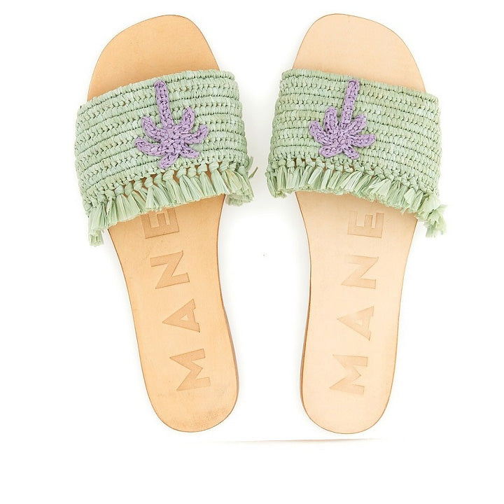 MANEBI FRINGED KNOTS RAFFIA LEATHER Sandals
