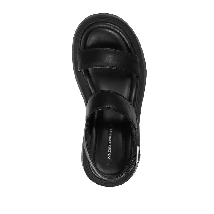 Chunky cleated platform Sandals. Made with soft cow Nappa leather with foam padding. Twin strap mule design with adjustable back strap.