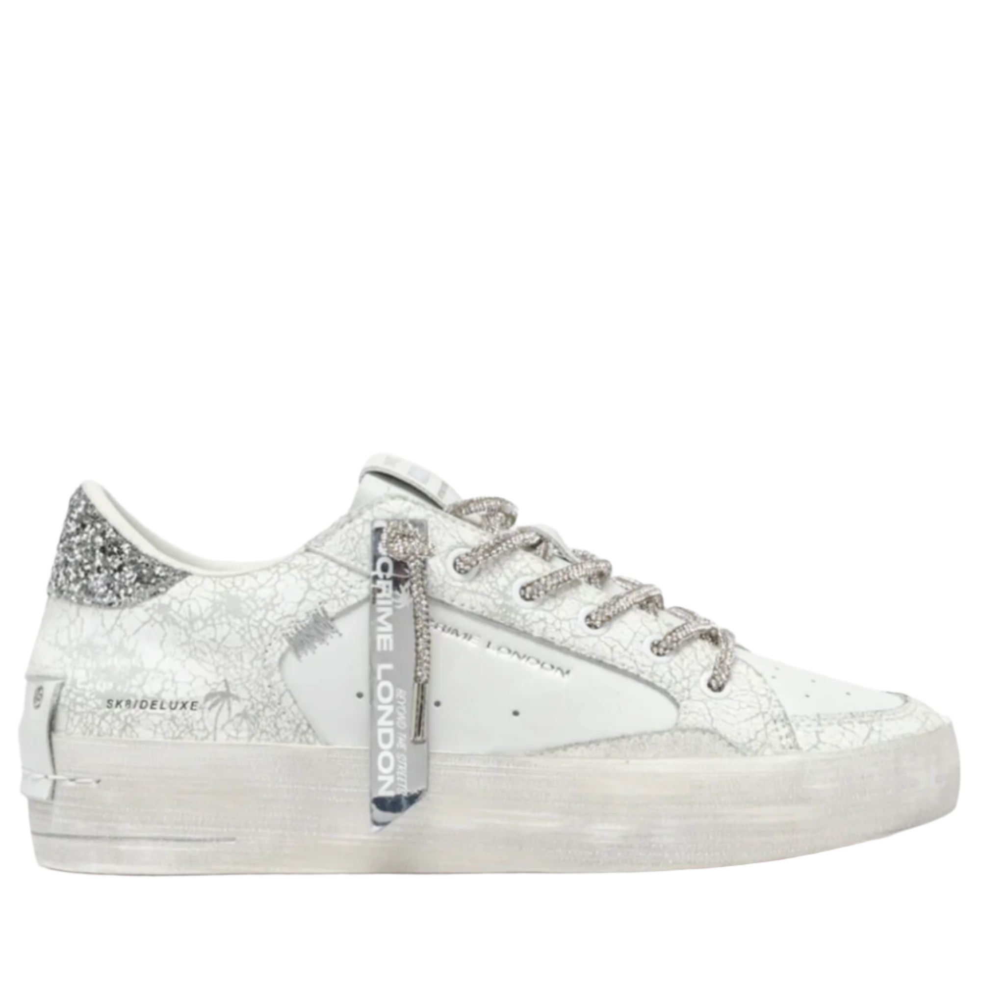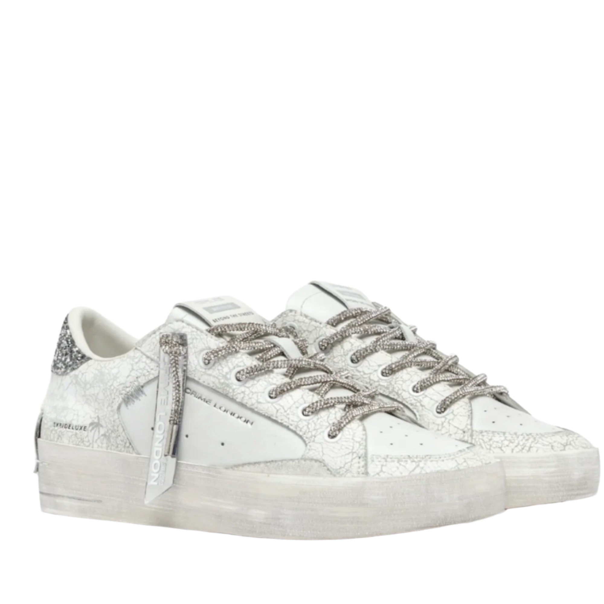 - White cracklé upper, white suede details