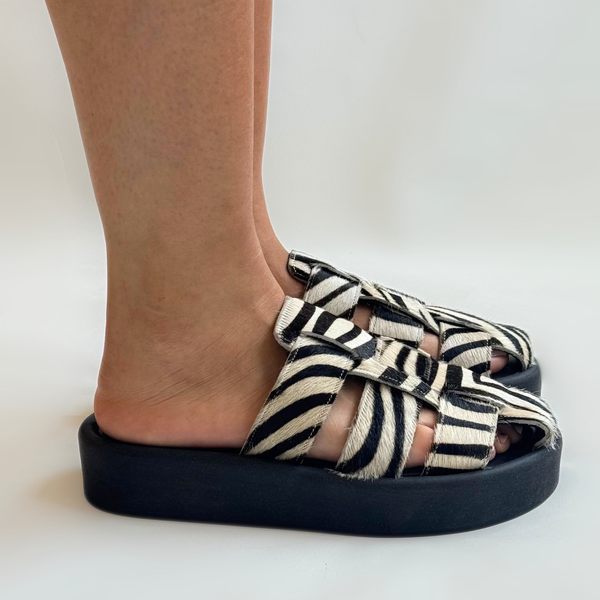 S.PIERO E101-010 ZEBRA LEATHER Slides