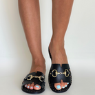 S.PIERO E2-071 BLACK LEATHER SLIDES