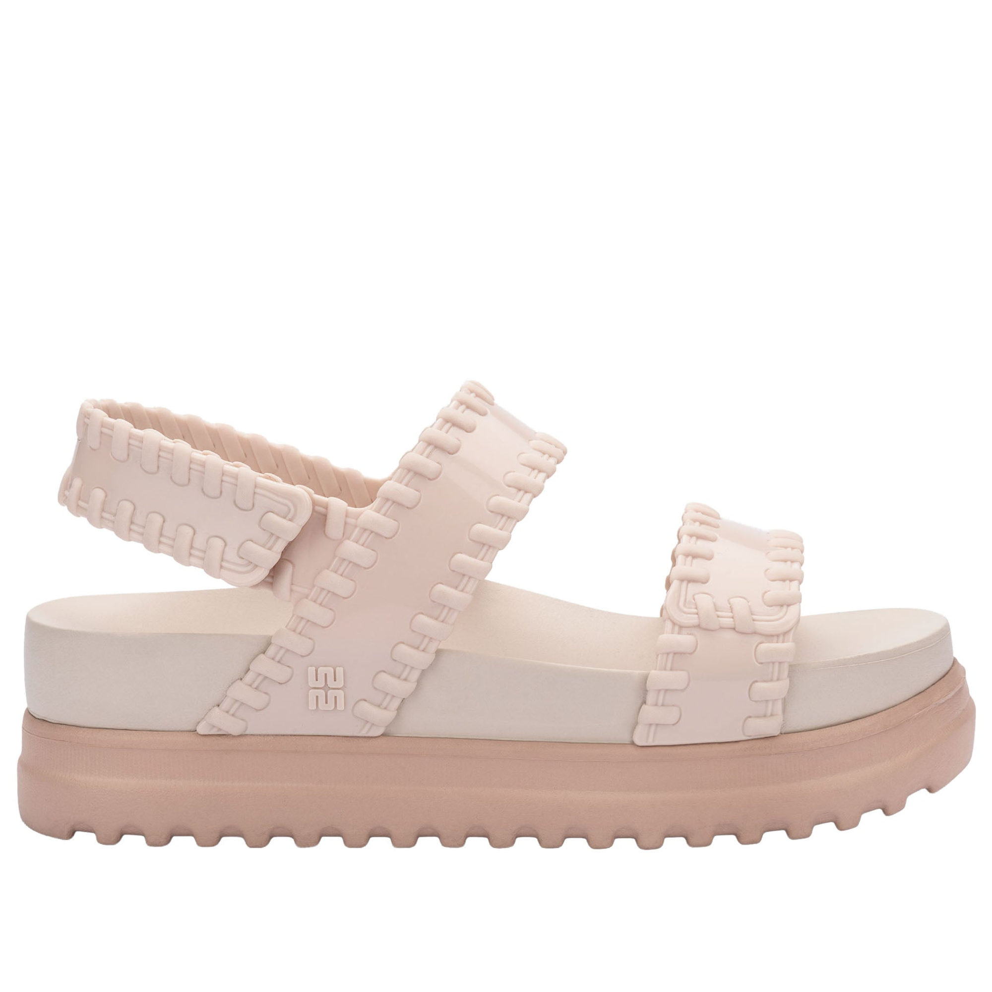 • A classic platform sandal with a modern edge, the Melissa Dune Platform features adjustable velcro ankle straps for a secure, custom fit, while the stitched strap detailing adds a trendy, elevated touch.